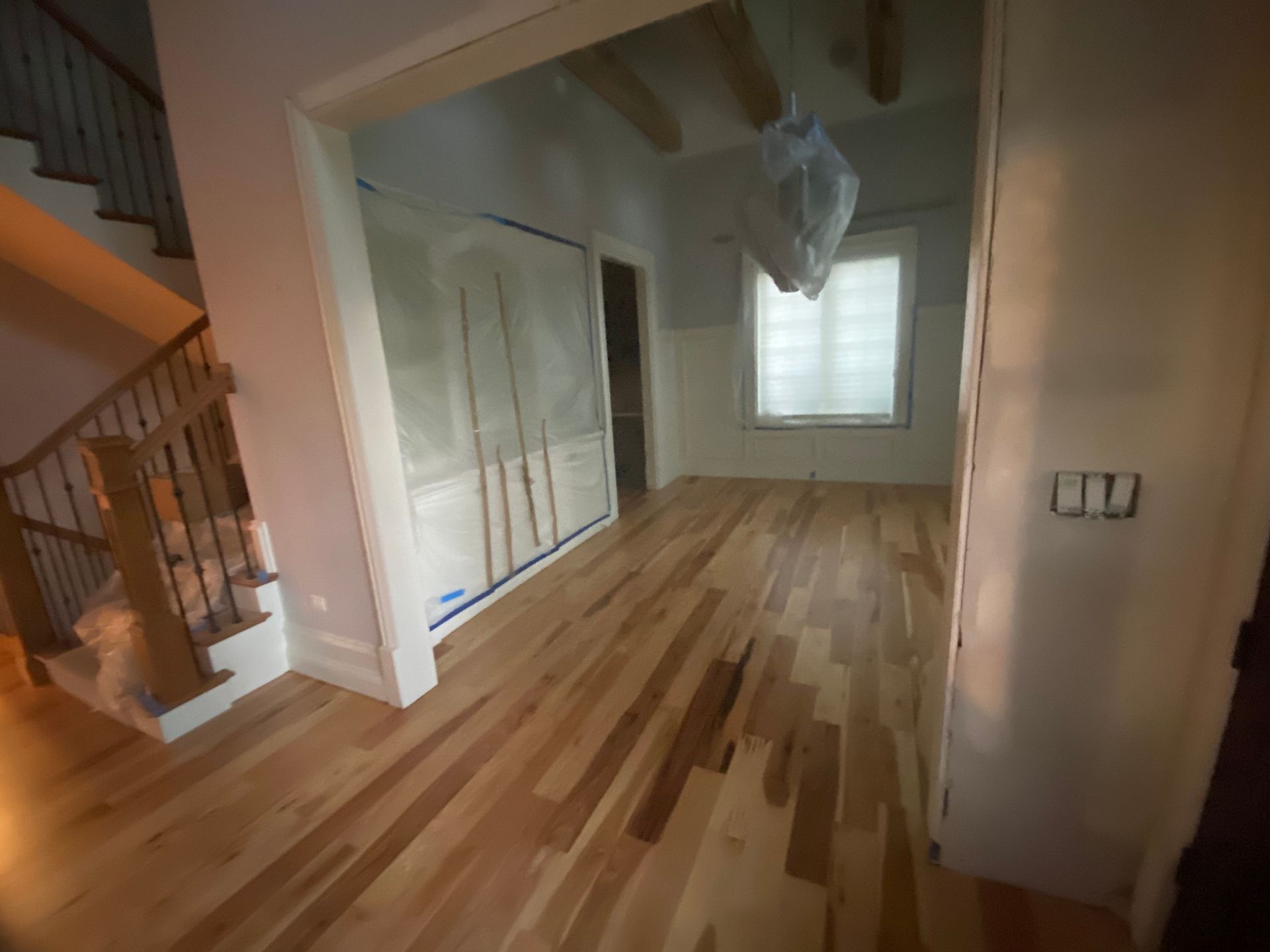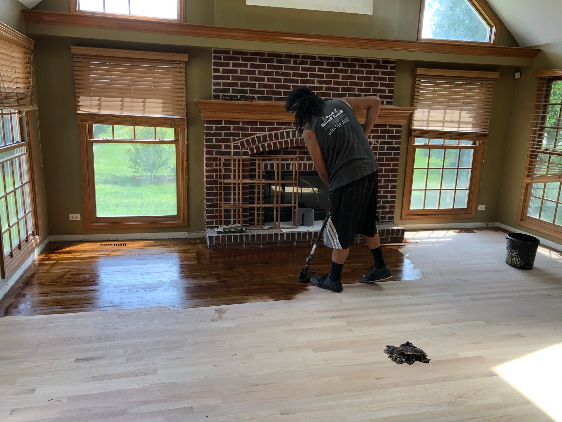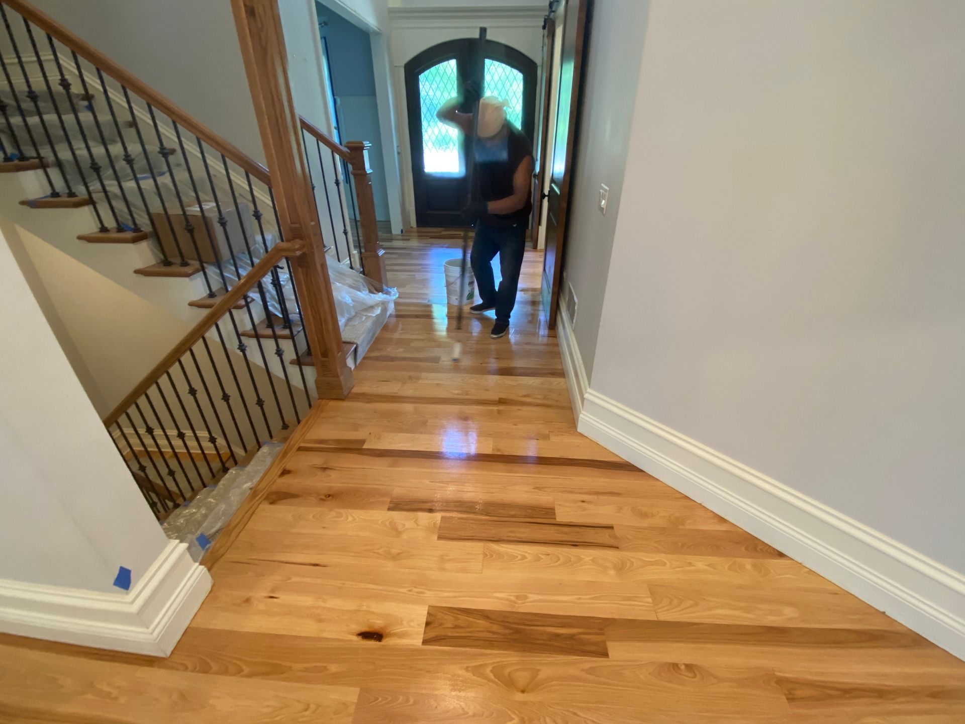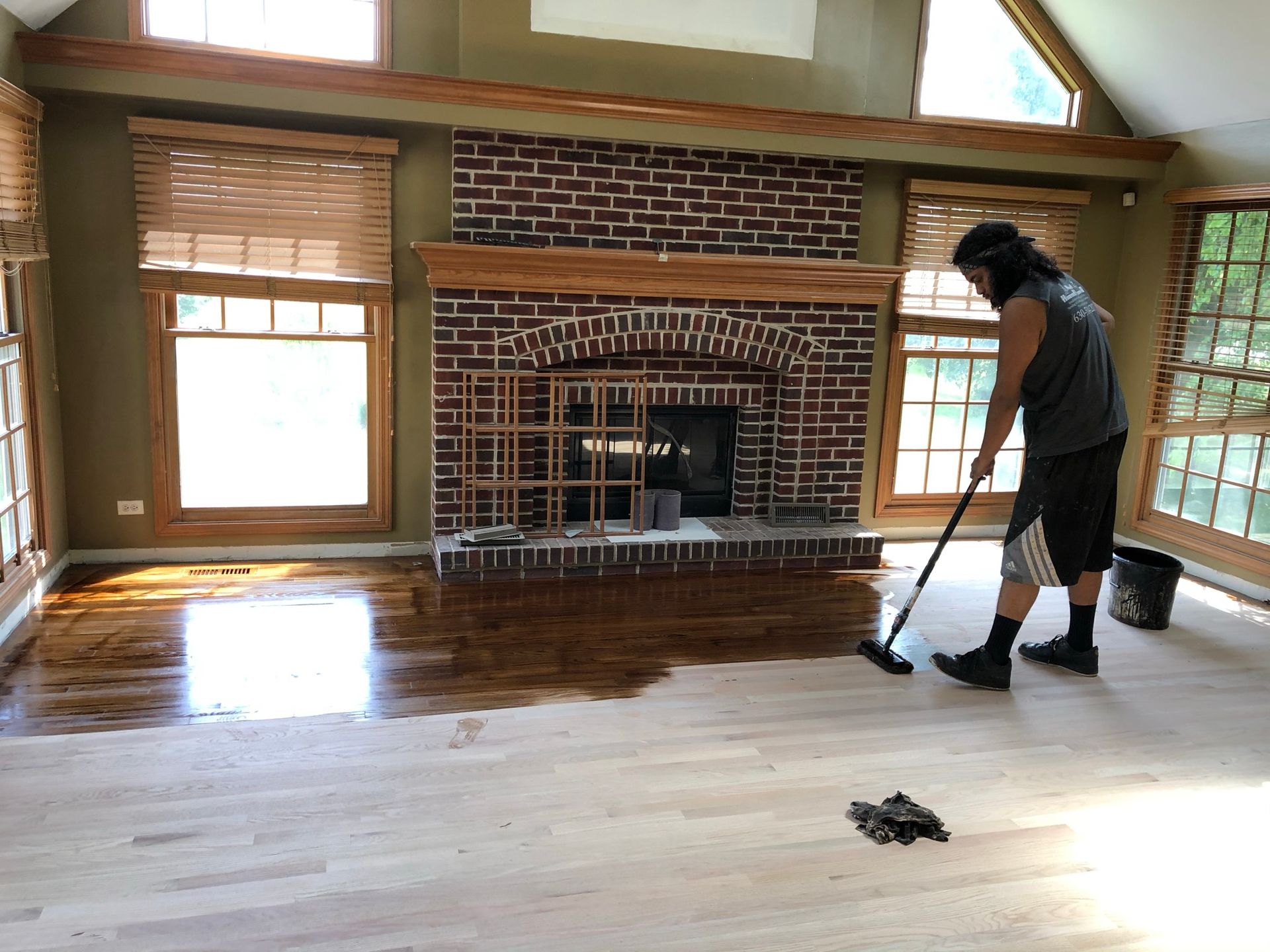 Why Water Popping Matters? When hardwood floors are sanded smooth through multiple grits, the grain closes up. A closed grain prevents stain from soaking in evenly, which can leave the floor looking blotchy or lighter than expected. Water popping solves this problem by re-opening the grain so stain can absorb consistently across the surface. This ensures the color you choose appears the way it should — rich, bold, and even