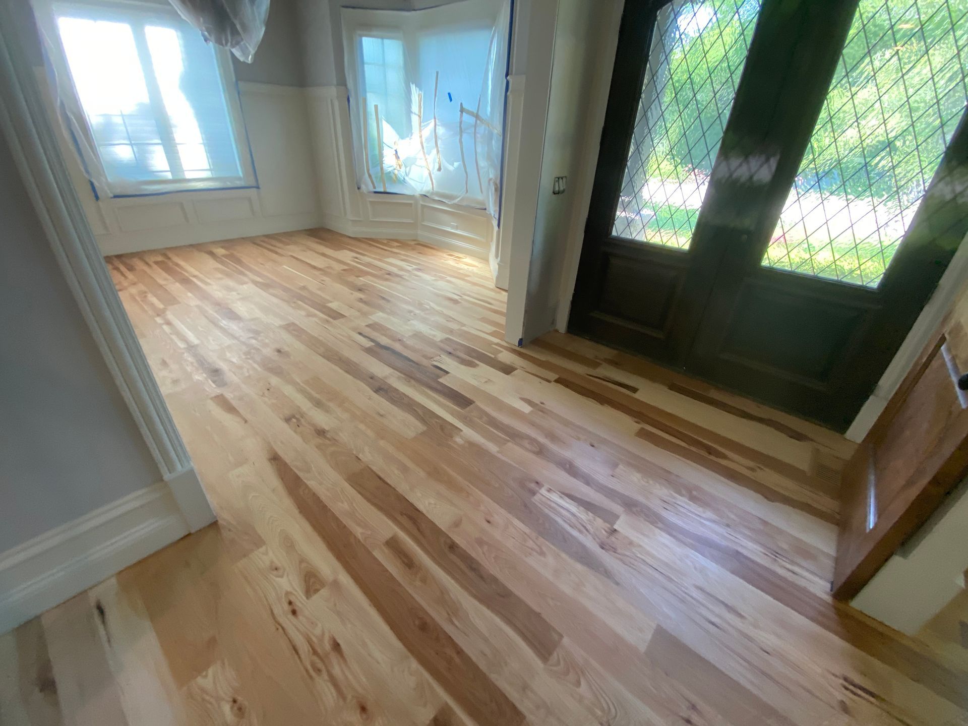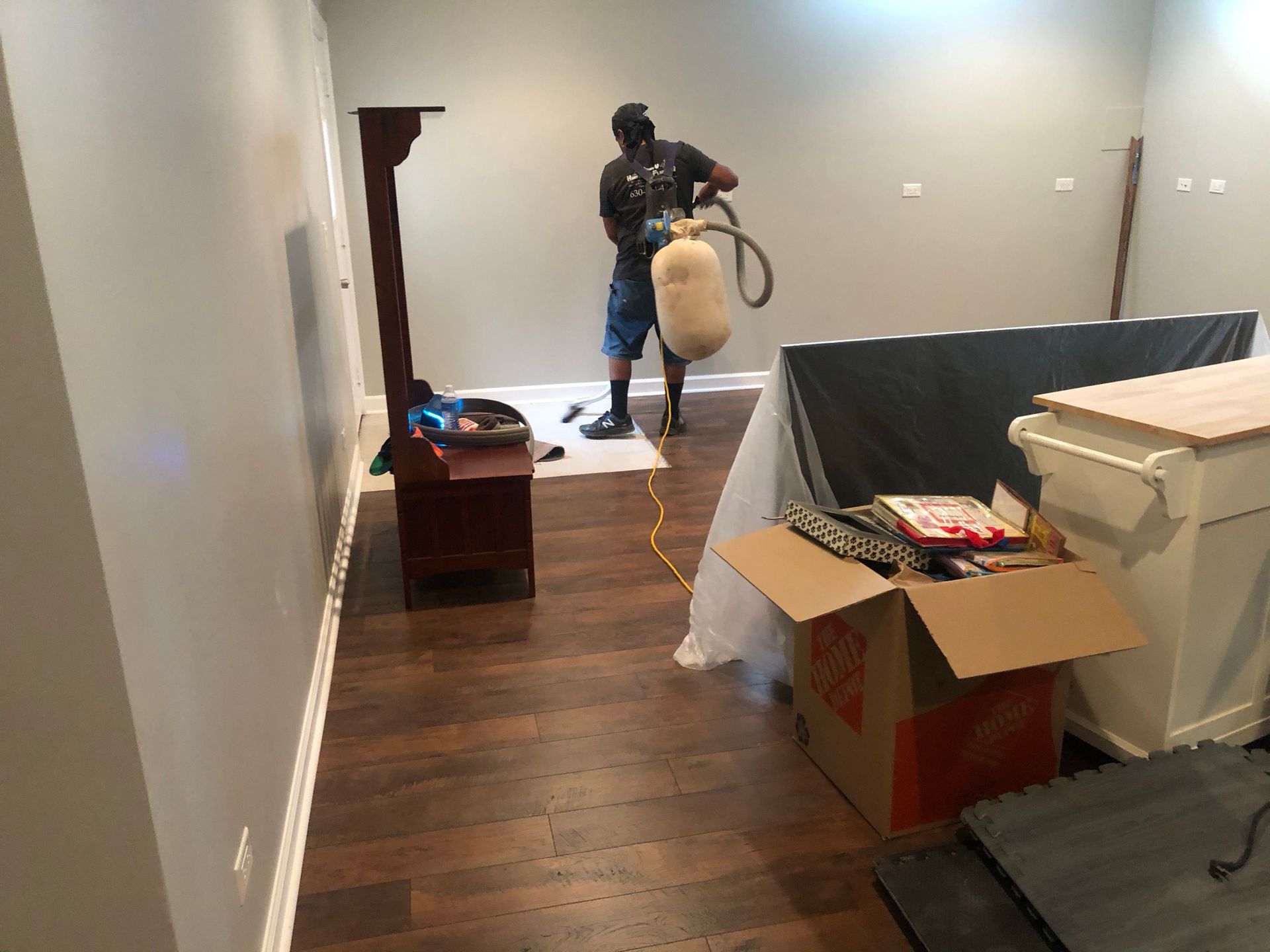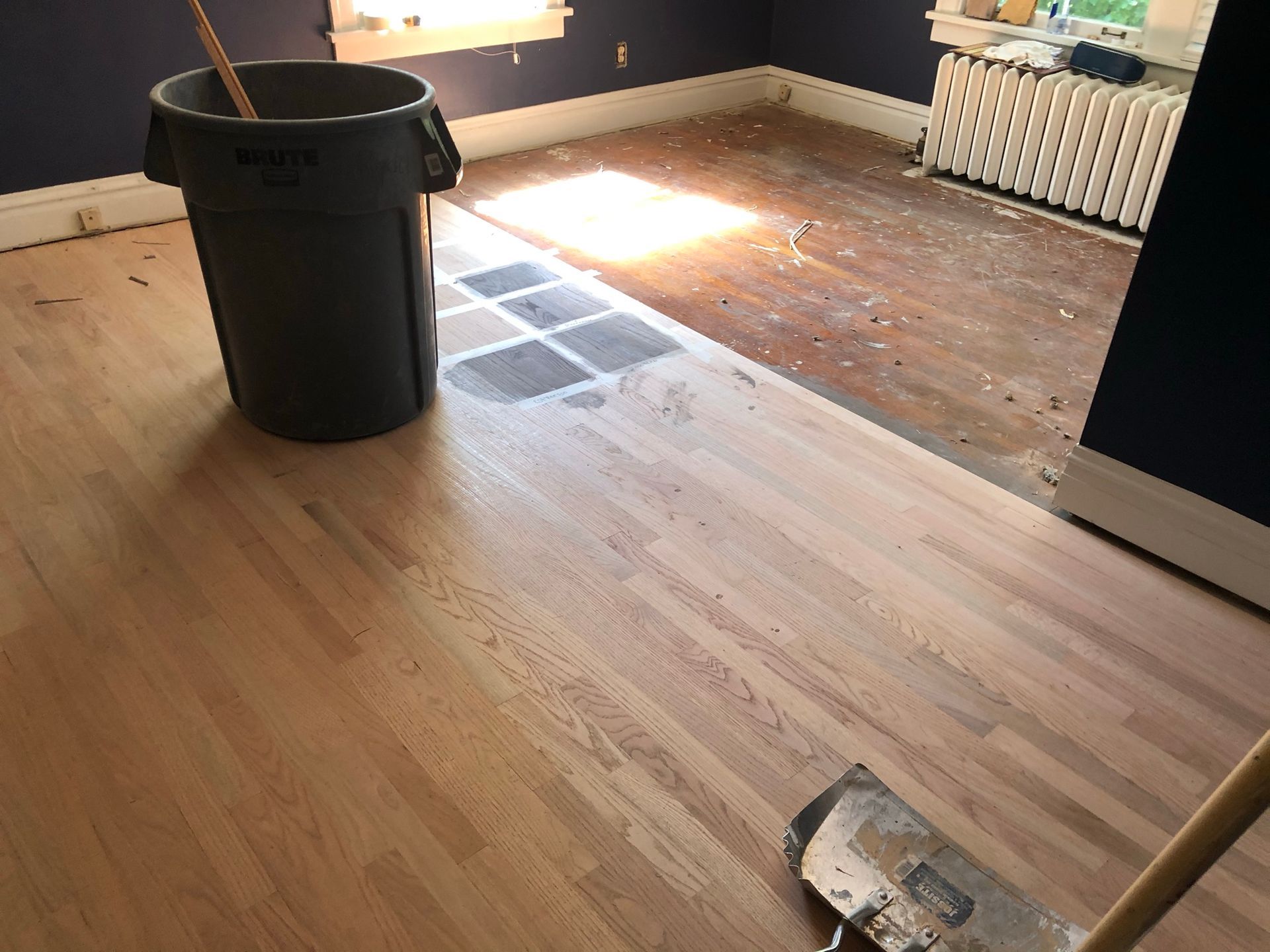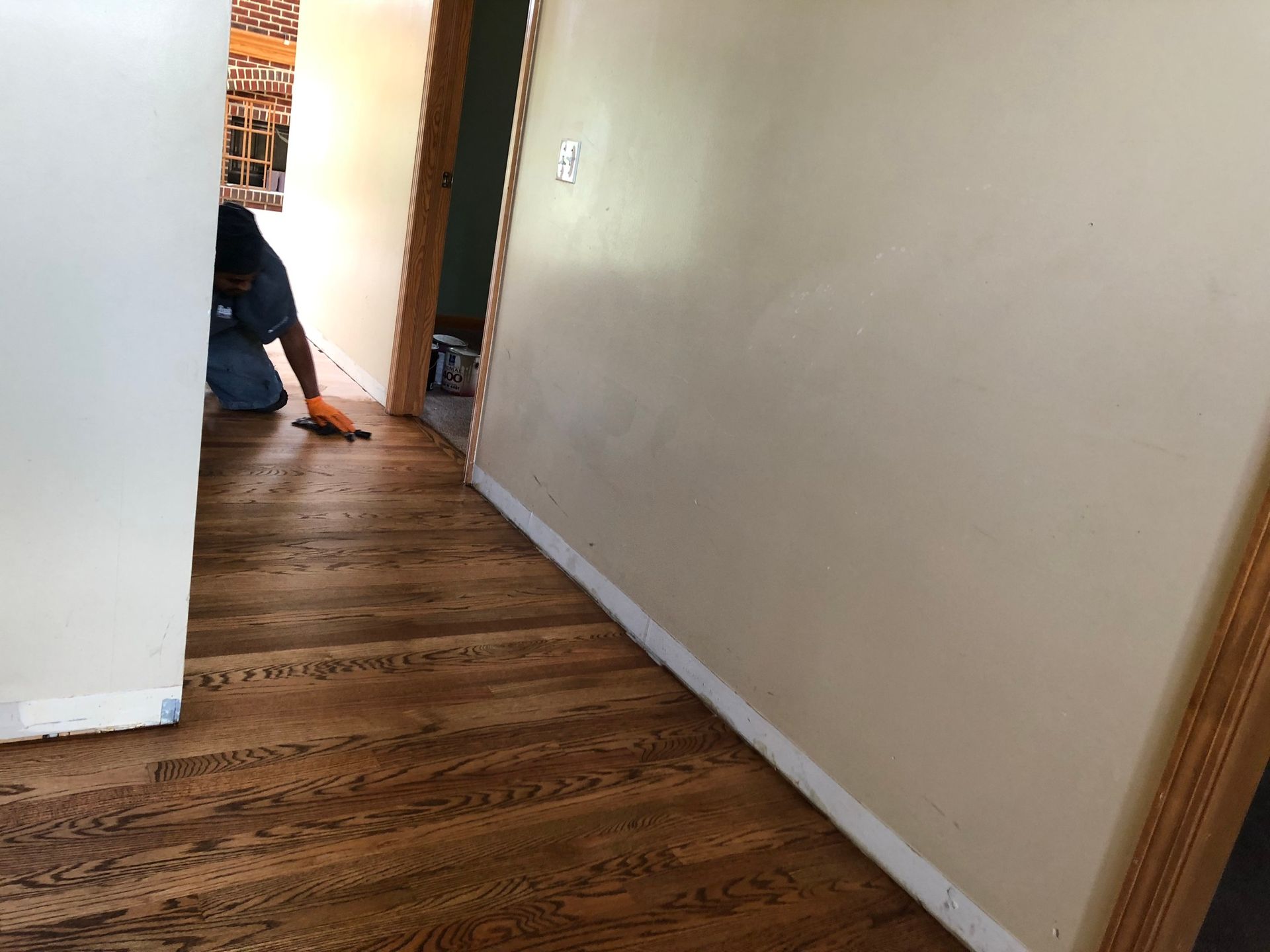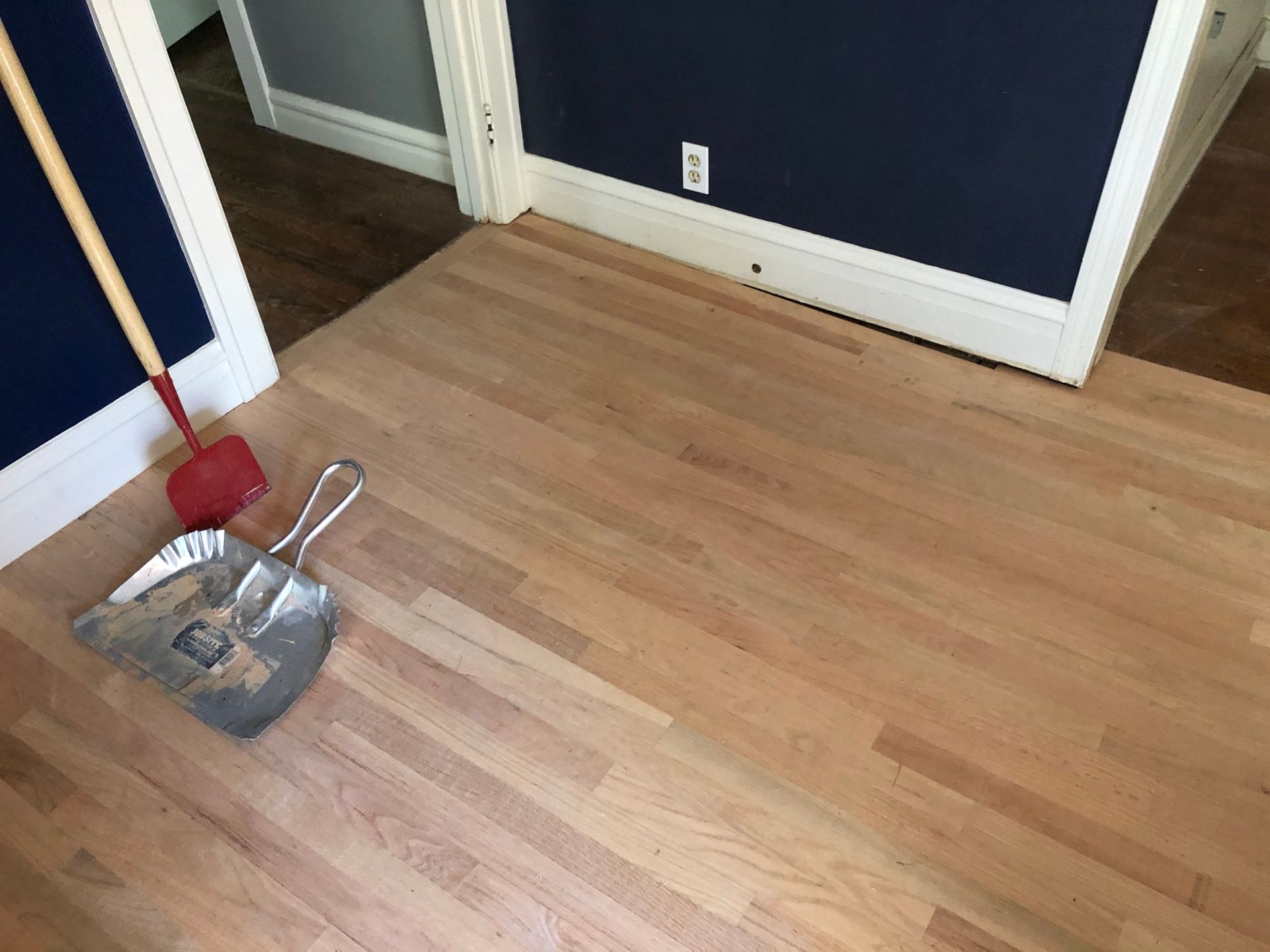Why Water Popping Matters? When hardwood floors are sanded smooth through multiple grits, the grain closes up. A closed grain prevents stain from soaking in evenly, which can leave the floor looking blotchy or lighter than expected. Water popping solves this problem by re-opening the grain so stain can absorb consistently across the surface. This ensures the color you choose appears the way it should — rich, bold, and even