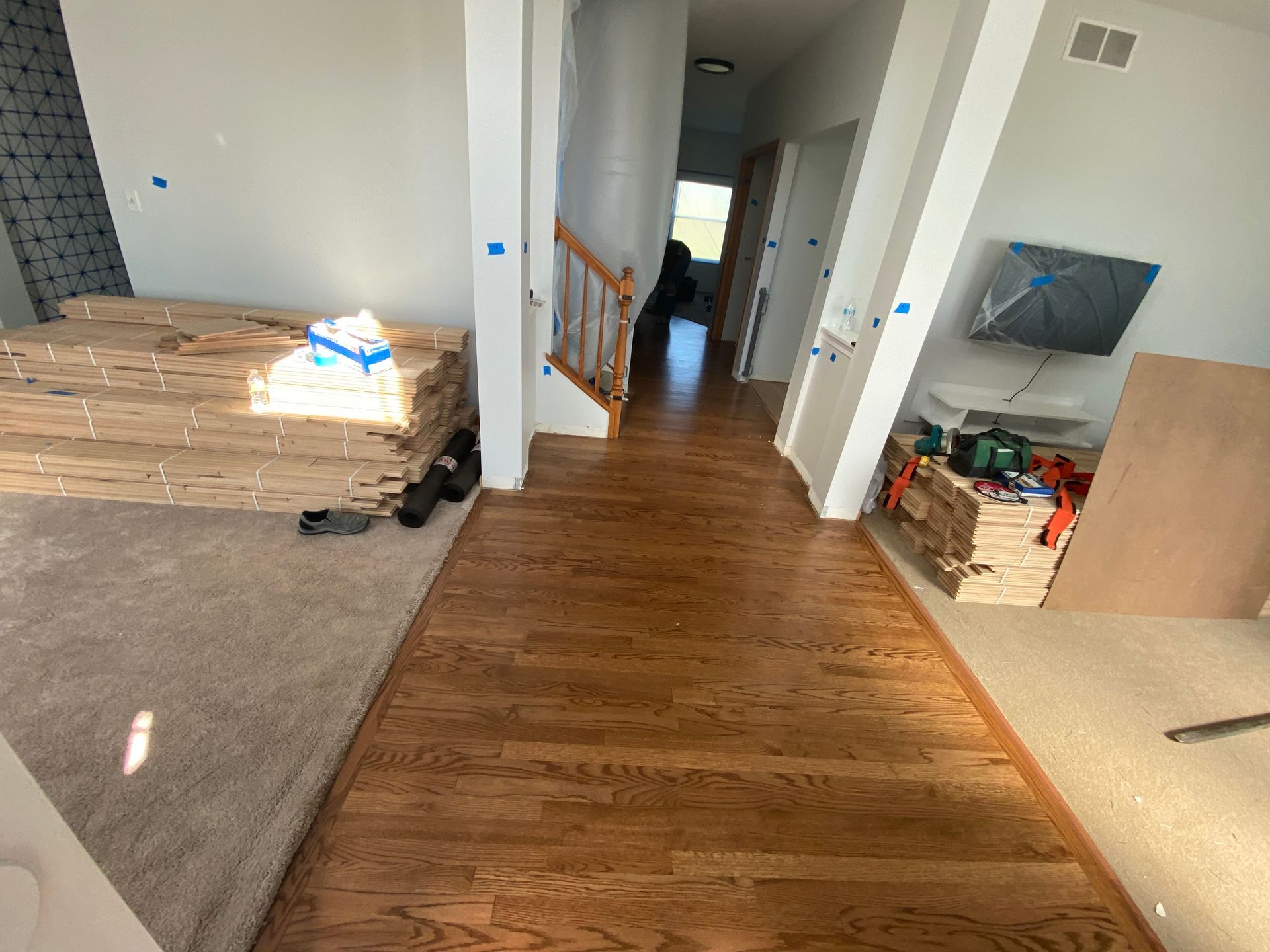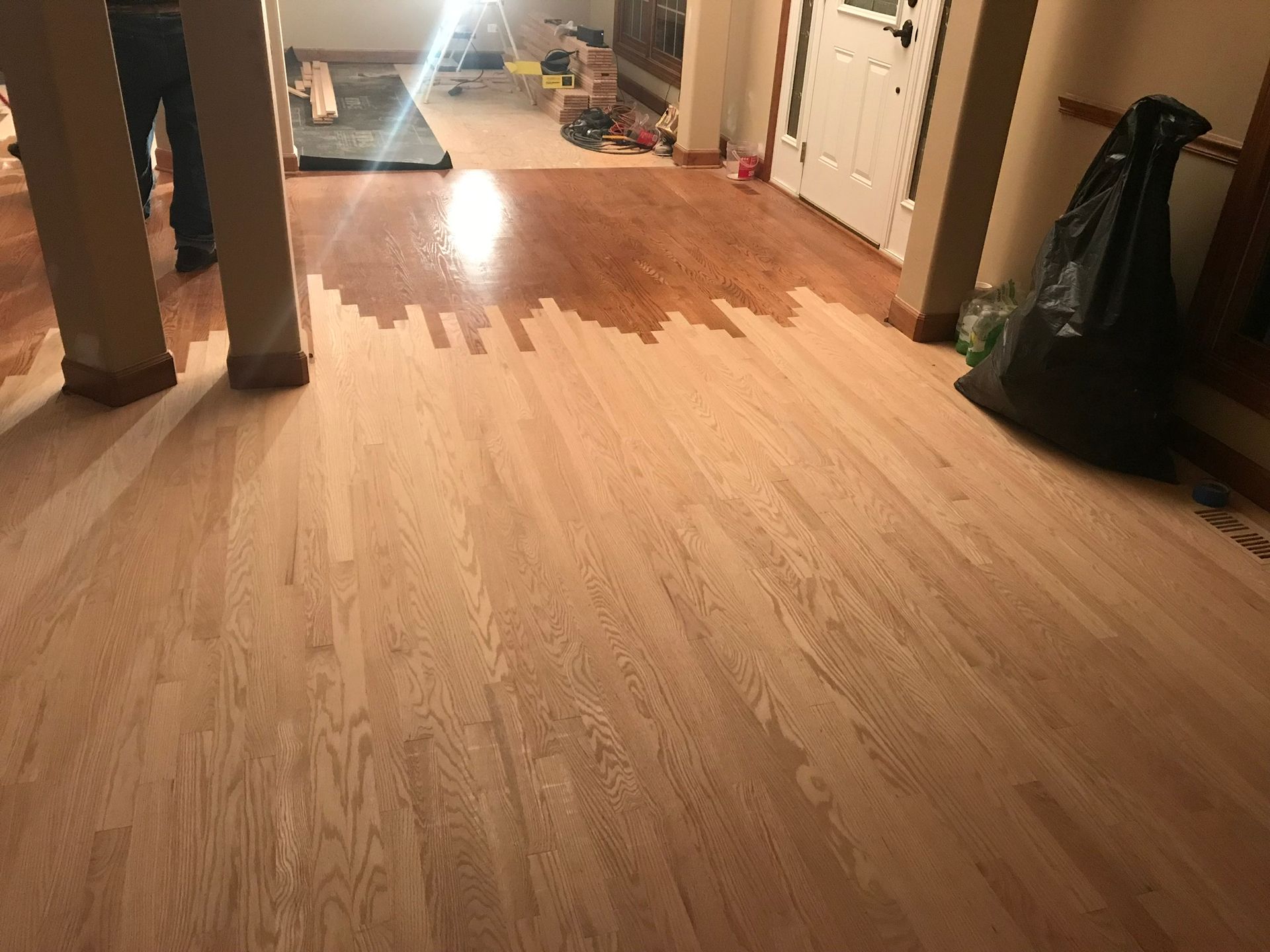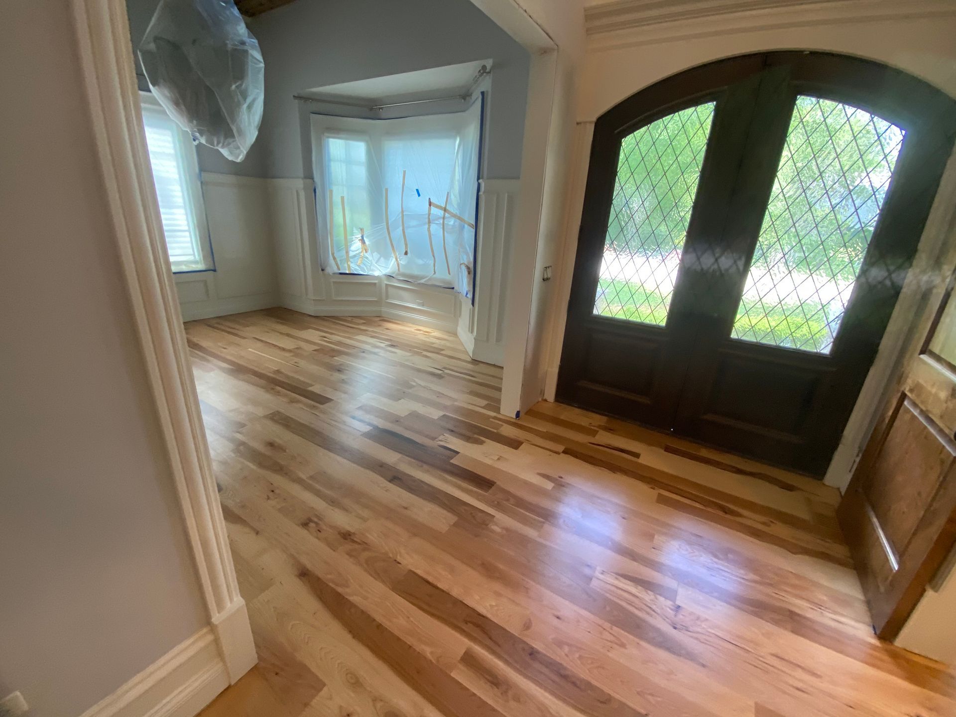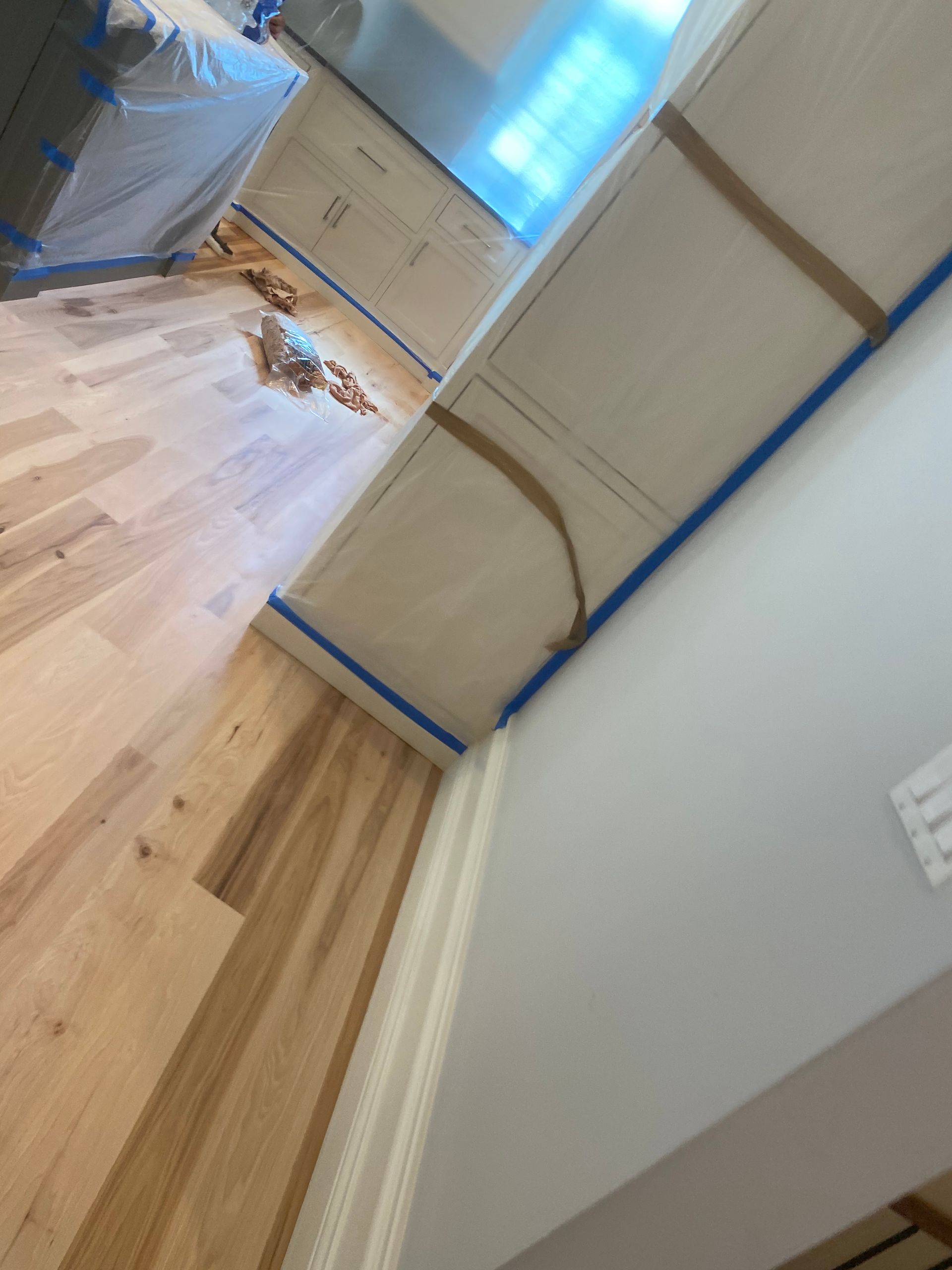 Why Water Popping Matters? When hardwood floors are sanded smooth through multiple grits, the grain closes up. A closed grain prevents stain from soaking in evenly, which can leave the floor looking blotchy or lighter than expected. Water popping solves this problem by re-opening the grain so stain can absorb consistently across the surface. This ensures the color you choose appears the way it should — rich, bold, and even