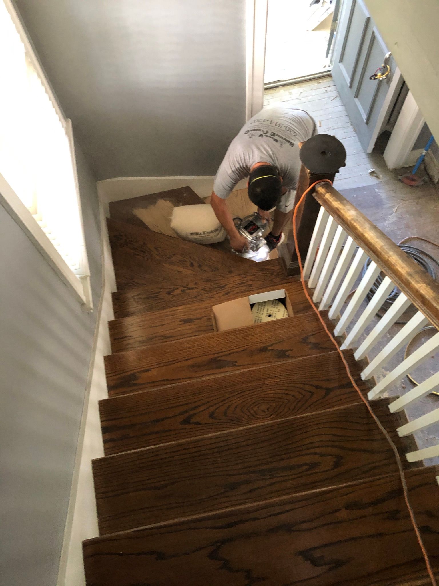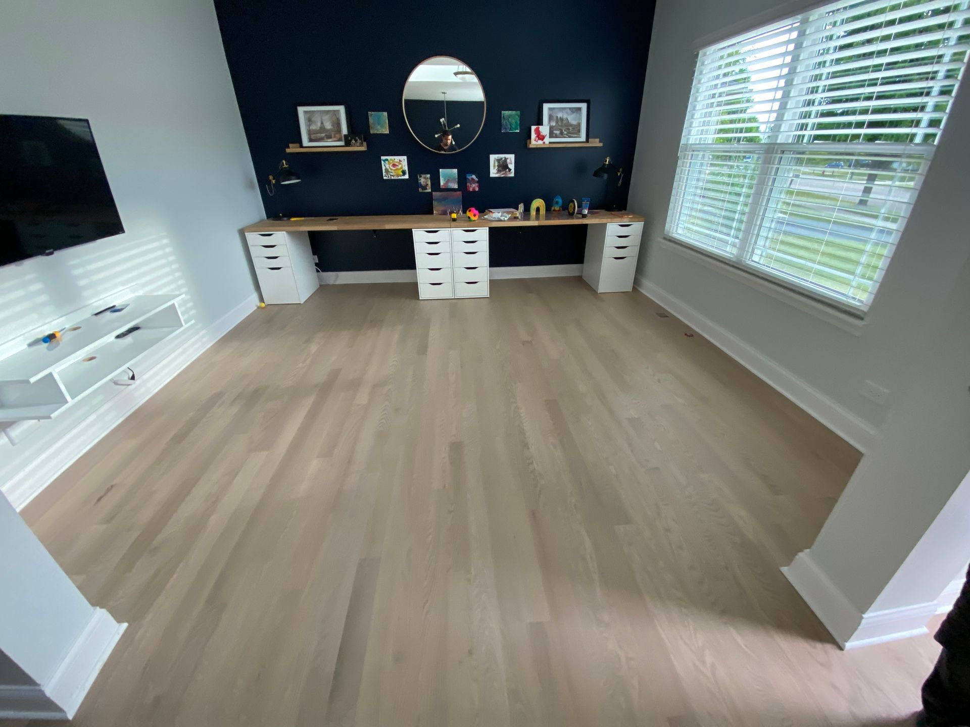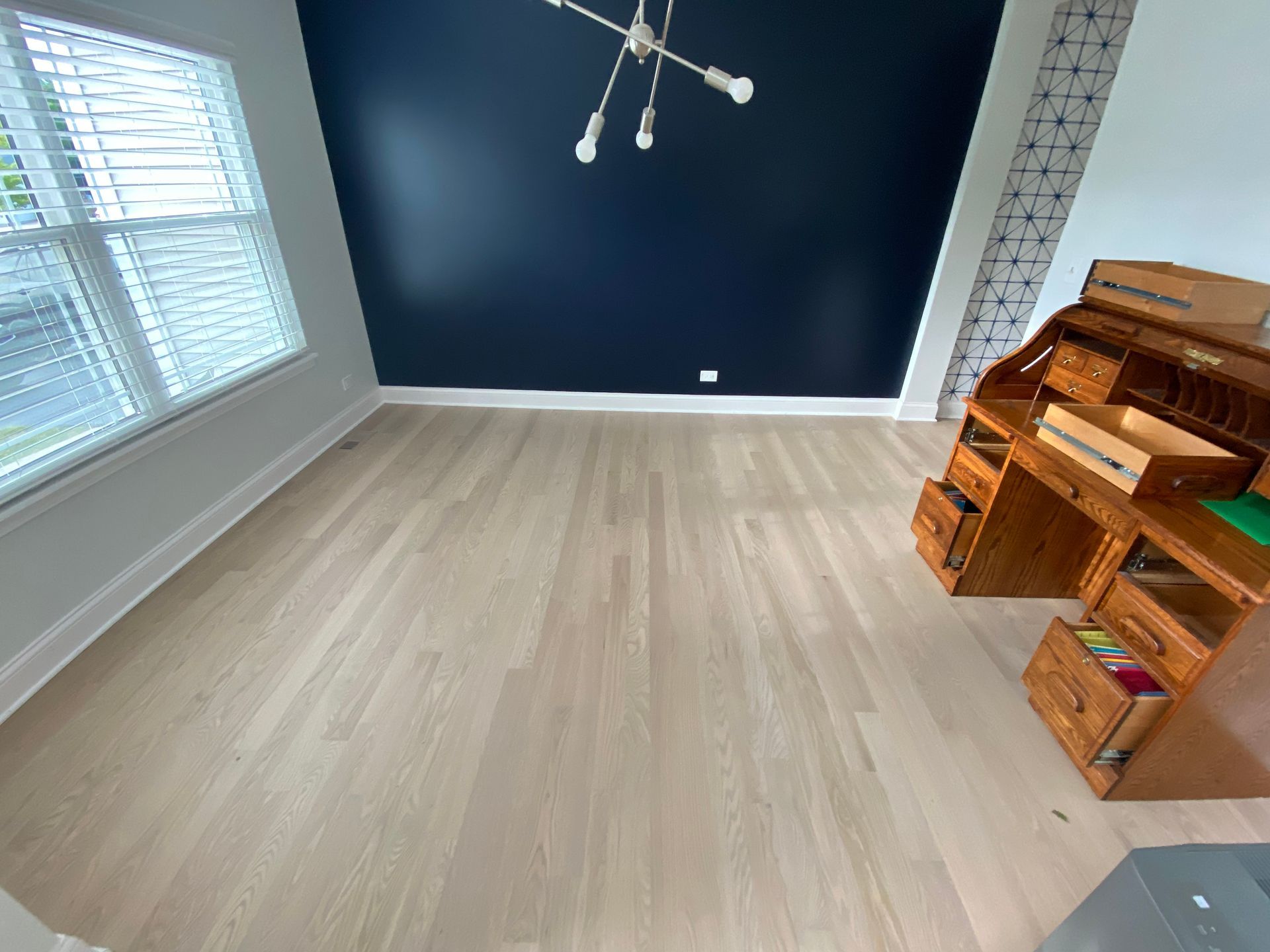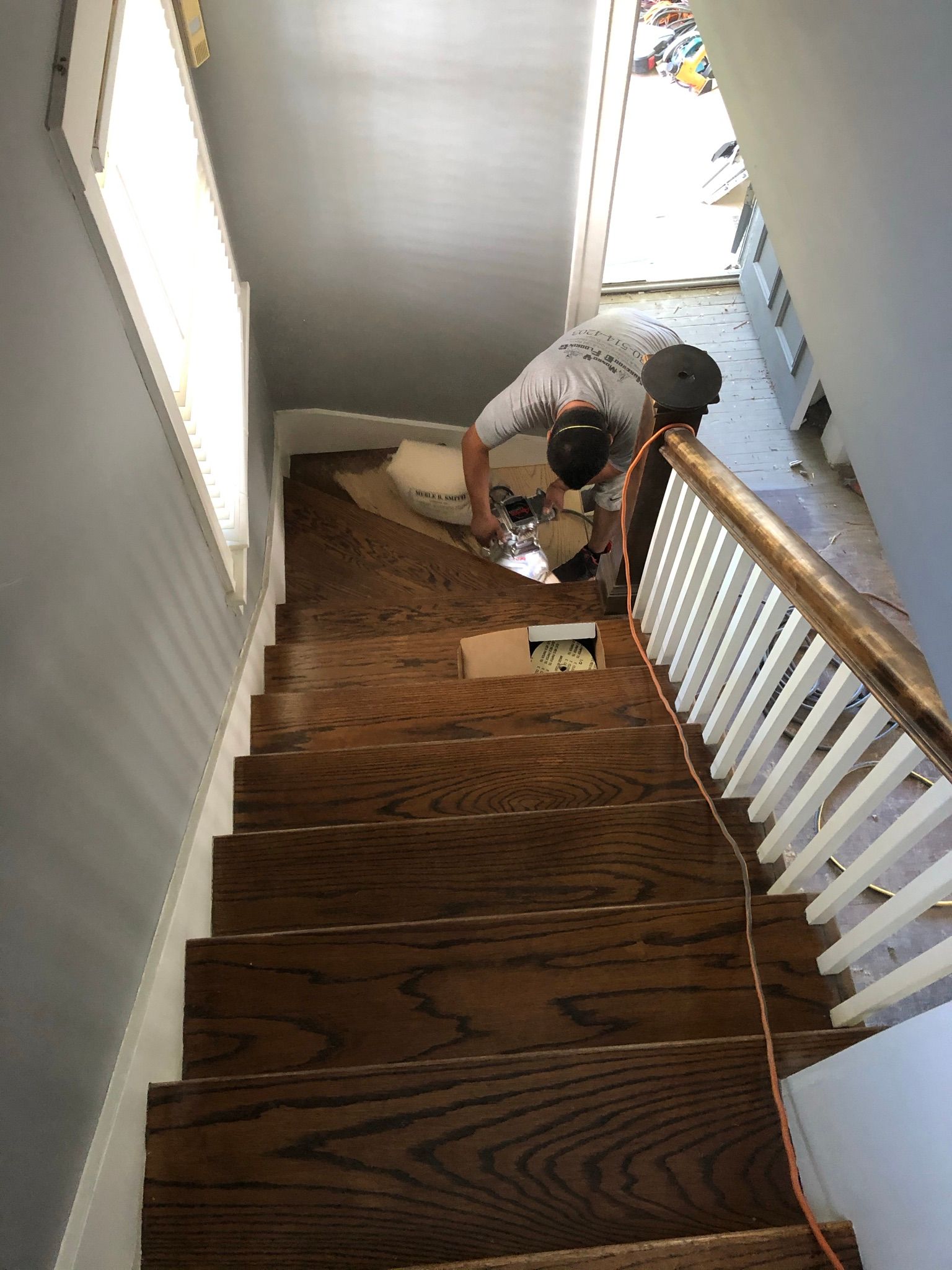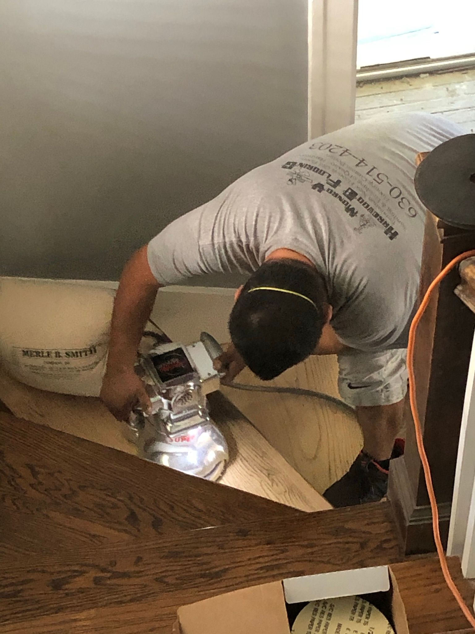 Why Water Popping Matters? When hardwood floors are sanded smooth through multiple grits, the grain closes up. A closed grain prevents stain from soaking in evenly, which can leave the floor looking blotchy or lighter than expected. Water popping solves this problem by re-opening the grain so stain can absorb consistently across the surface. This ensures the color you choose appears the way it should — rich, bold, and even