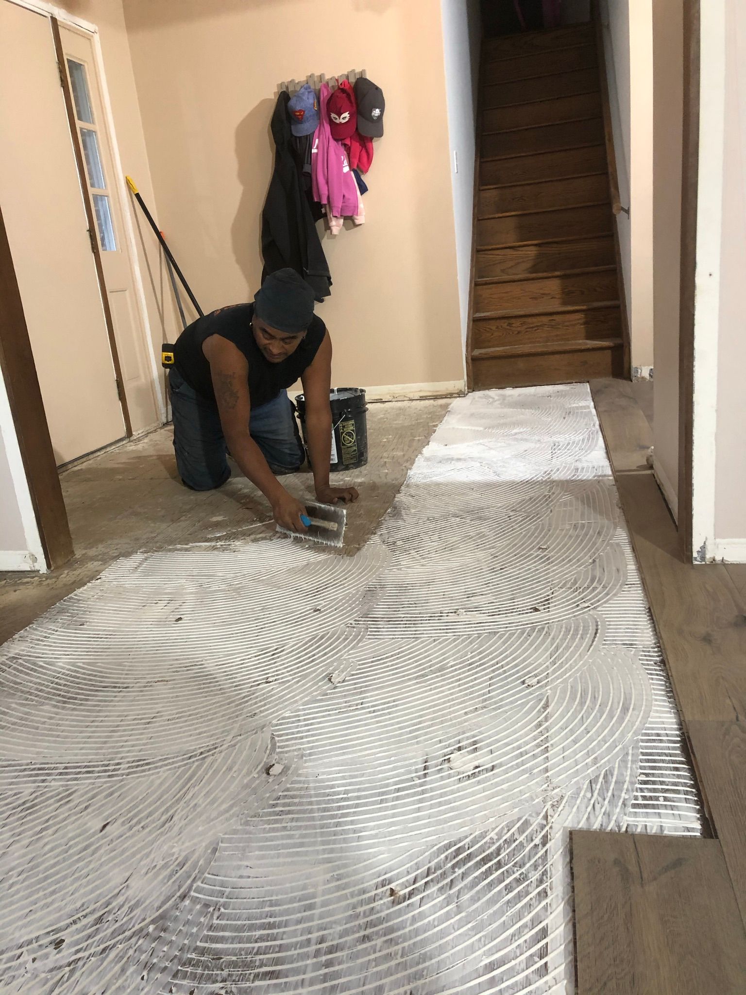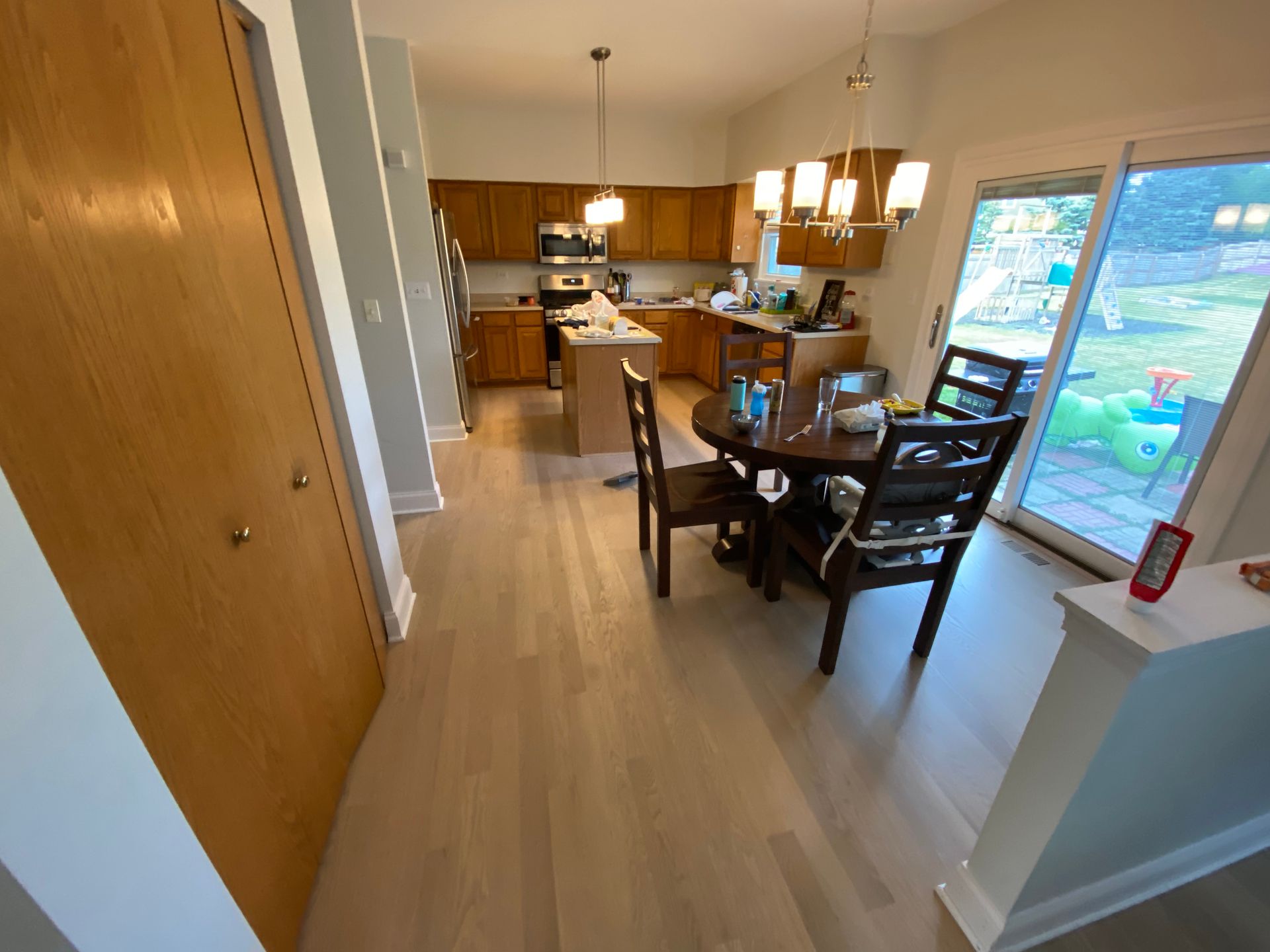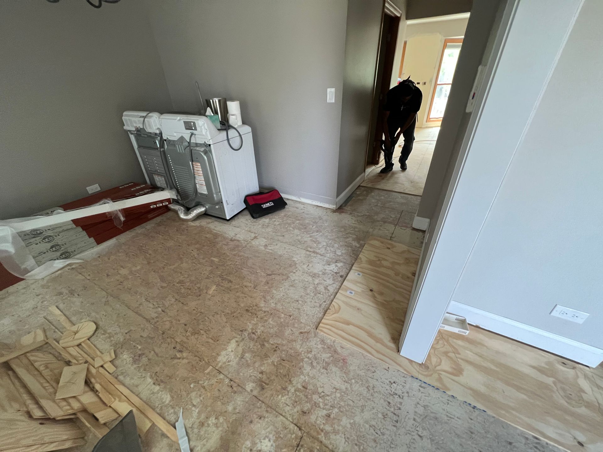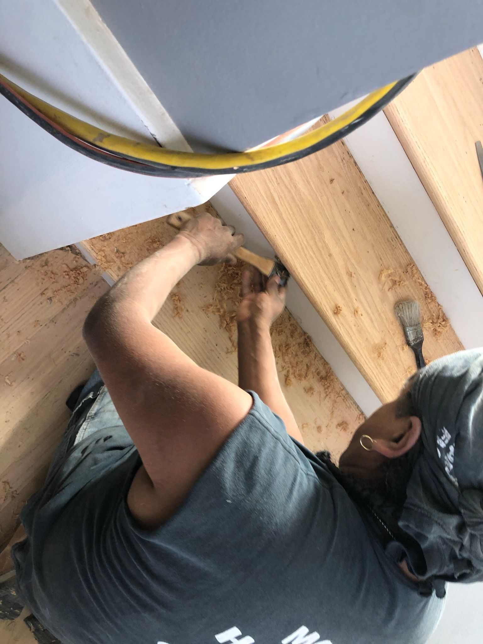Why Water Popping Matters? When hardwood floors are sanded smooth through multiple grits, the grain closes up. A closed grain prevents stain from soaking in evenly, which can leave the floor looking blotchy or lighter than expected. Water popping solves this problem by re-opening the grain so stain can absorb consistently across the surface. This ensures the color you choose appears the way it should — rich, bold, and even